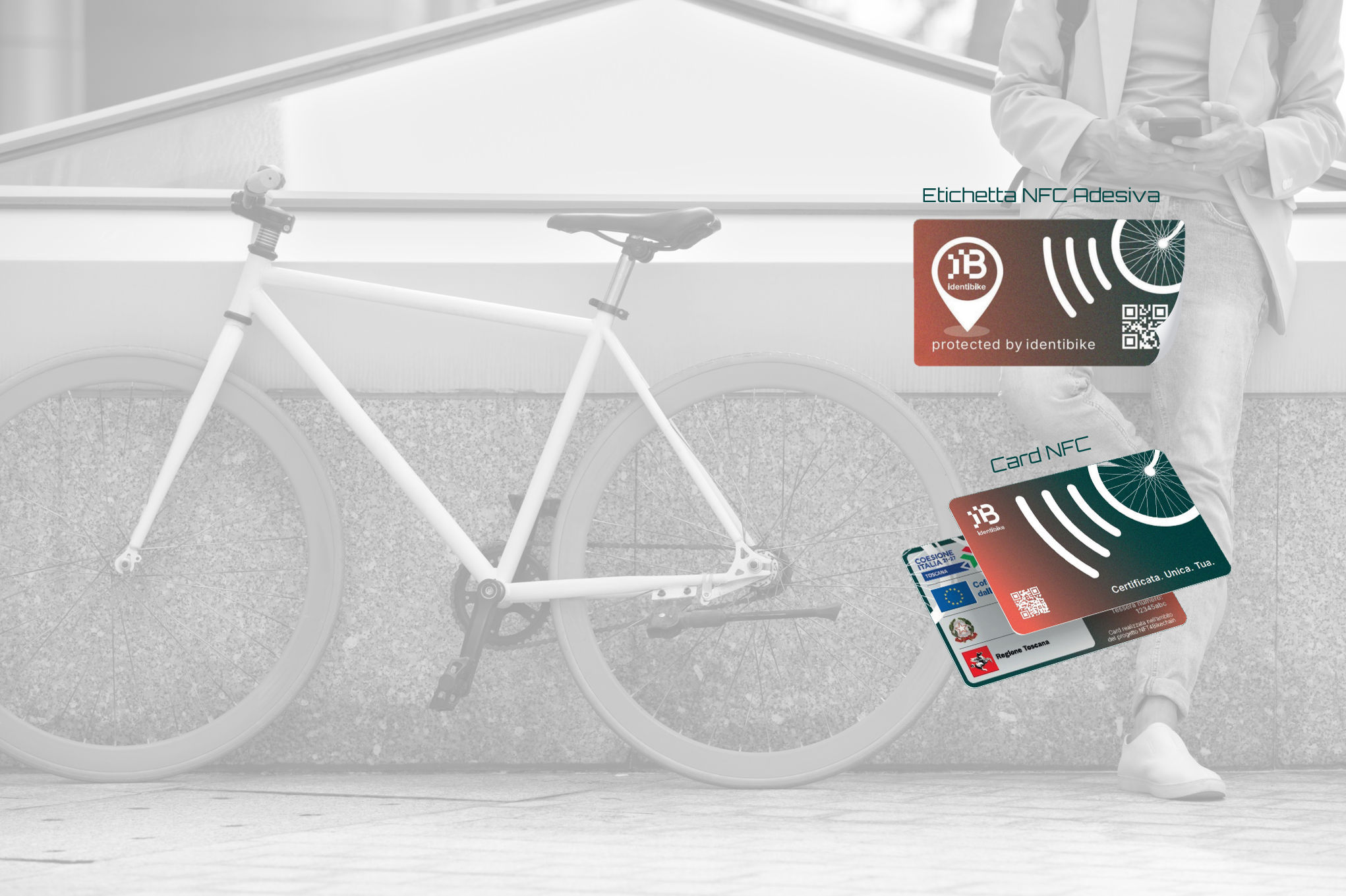 Nel Kit di iscrizione viene fornita, oltre alla Card, un’etichetta adesiva contenente un sensore NFC che deve essere incollata sulla bicicletta caricata nel Wallet. L’etichetta riporta la scritta ‘Protected by Identibike’ e funge, quindi, da disincentivo al furto. Inoltre, l’etichetta può essere utilizzata per raccogliere sconti/crediti attraverso la rete di negozi che fanno parte della Rete Identibike.